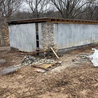 Two-story structure originally constructed in 1926 to house the family's chicken operations. Recently restored to preserve the integrity of the original structure, including its original tin roof, and add a new stone facade