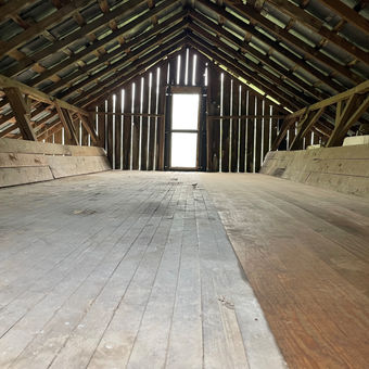 Both from the early 1900s. Owen hay barn is an open-air pole barn structure. Davis hay barn includes a loft